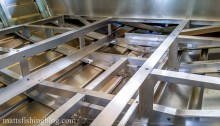 The floor frame is well underway now and I’m really happy with the results. The layout I have decided to go with includes a bow and starboard casting platforms, level middle section with underfloor rod locker. The rod locker has been a lot more work and fiddly than expected as it extends under the front…