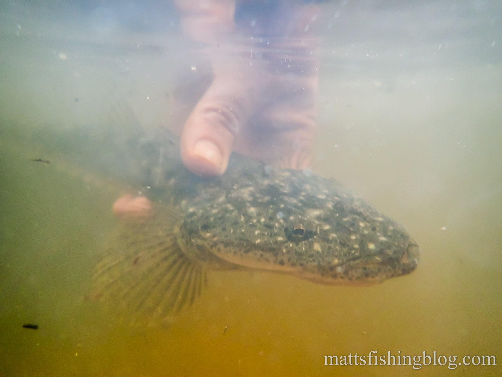 The flathead was successfully released after posing for some photos.