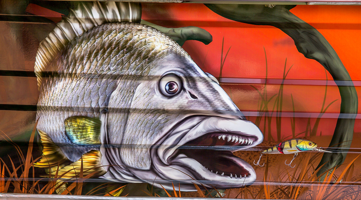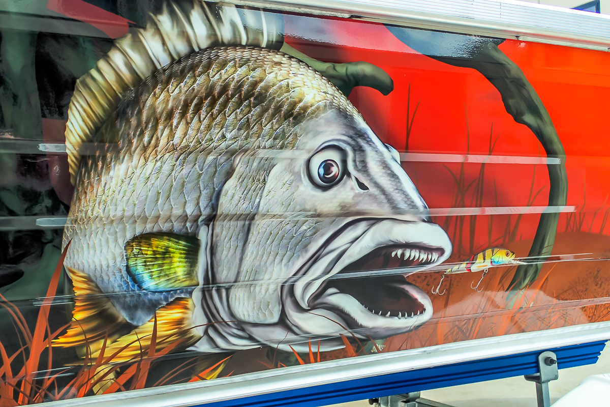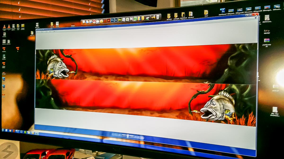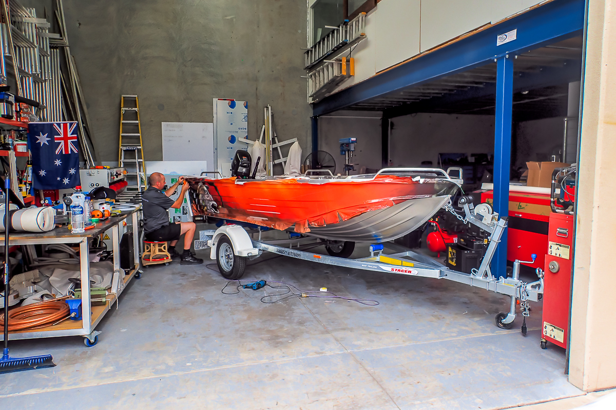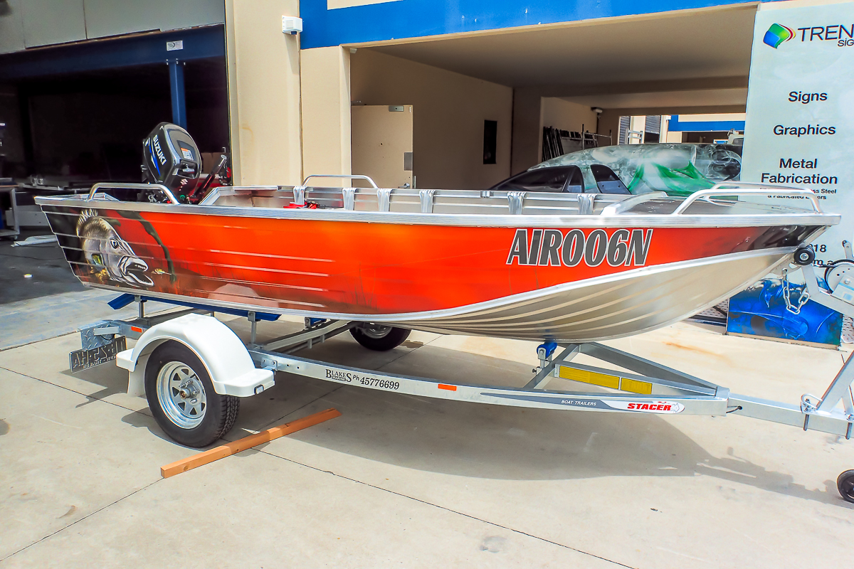 The day started with a 4:30am alarm (aagghhh) and I was soon headed down to Taren Point to see Craig at Graphic Wraps. Craig met me outside the factory at 7am and went straight to work designing my wrap. I had this image of a burnt orange boat with a killer Bream about to smash a lure. Craig was all over it and after a couple of hours on Photoshop I felt like Craig had reached inside my brain and pulled the image straight out.
