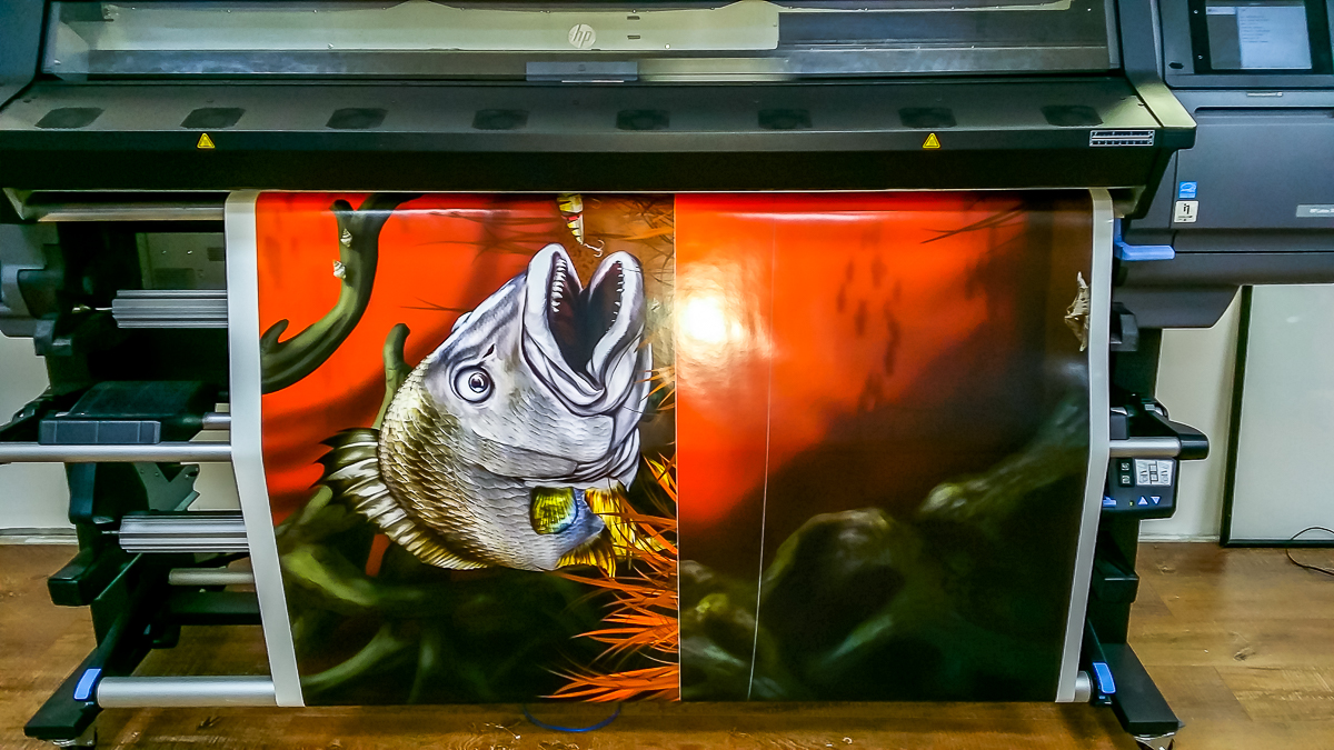 From computer to one massive printer the test run looked perfect. We put the print together with the overlay and headed to the boat. This basically becomes a massive sticker that Craig handled better than I can use sticky tape (I don’t know how he does it).