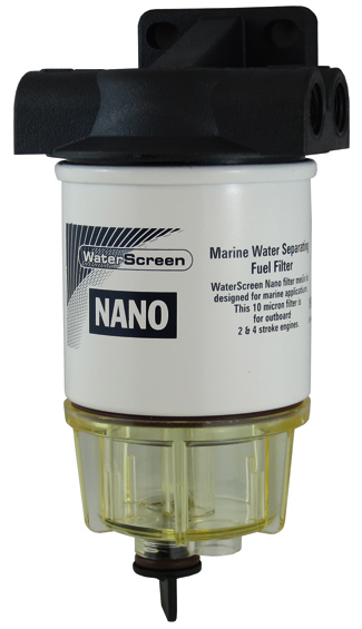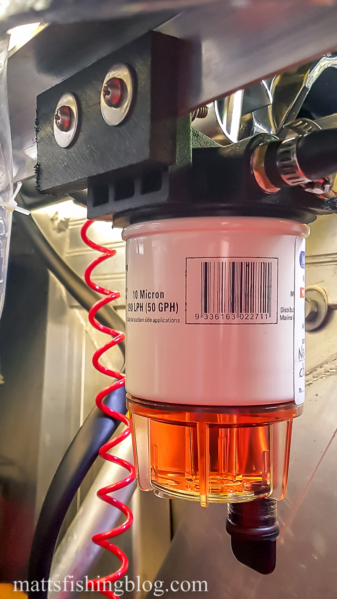 I recently decided to put a fuel filter on the boat to protect the motor from fuel contaminated with water. The choice of filter was easy; the WaterScreen nano fuel filter from Whitworths ($57) is rated for outboards up to 70hp and seemed perfect. The process was pretty simple, however, I had to look around a bit to work out how the inlet and outlet system works. In the end I found a great video on you tube by Dangar Marine – Link